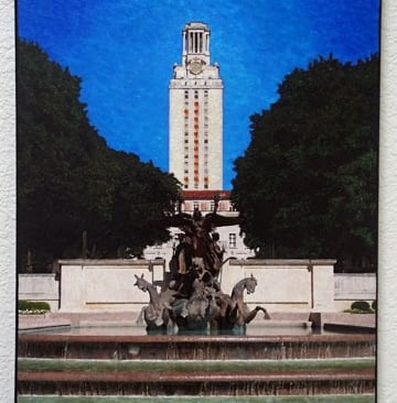 "Impression of Austin with Bats" - Acrylics on canvas board, black wood frame (framed size 17" x 21")