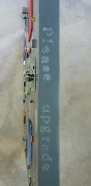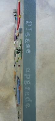 "Planned Obsolescence" - Mixed media (acrylics, computer parts, paper, found objects) on canvas (24" x 24" x 1.5") + edge view