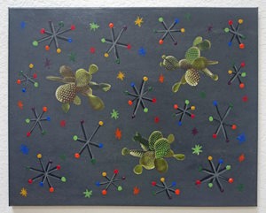 "Cosmic Cactus" - Mixed media (acrylics, digitally edited original photography, metal brads) on canvas