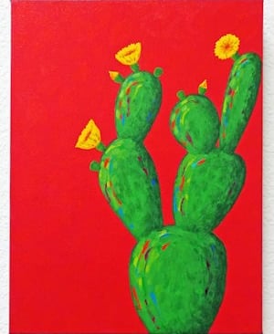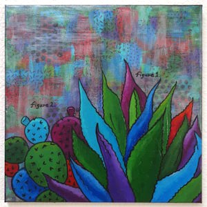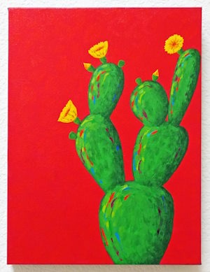 "Happy Cactus" - Mixed media (acrylics, digitally edited original photography, oil pastels, silicone) on canvas