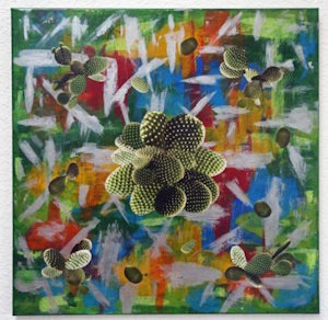 "Molecular Cactus" - Mixed media (acrylics, collages of digitally edited original photography) on canvas (20" x 20" x 5/8")